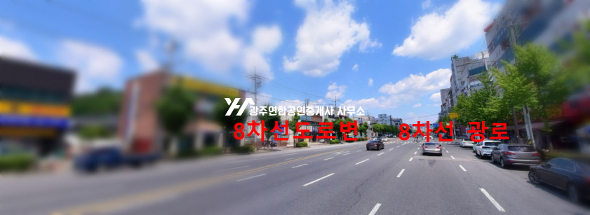 8차선 광로에 접하여서 많은 유동차량이 있고